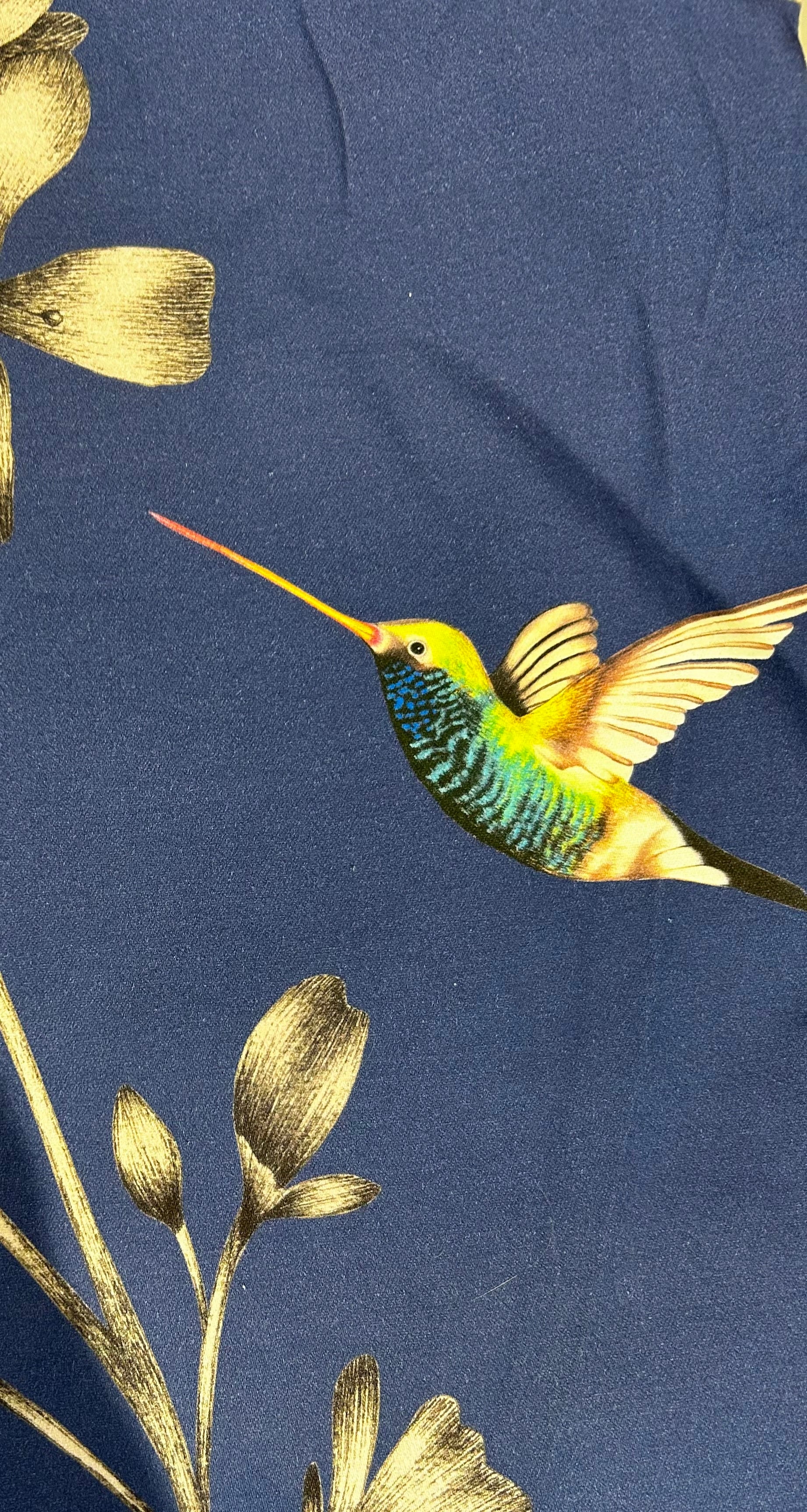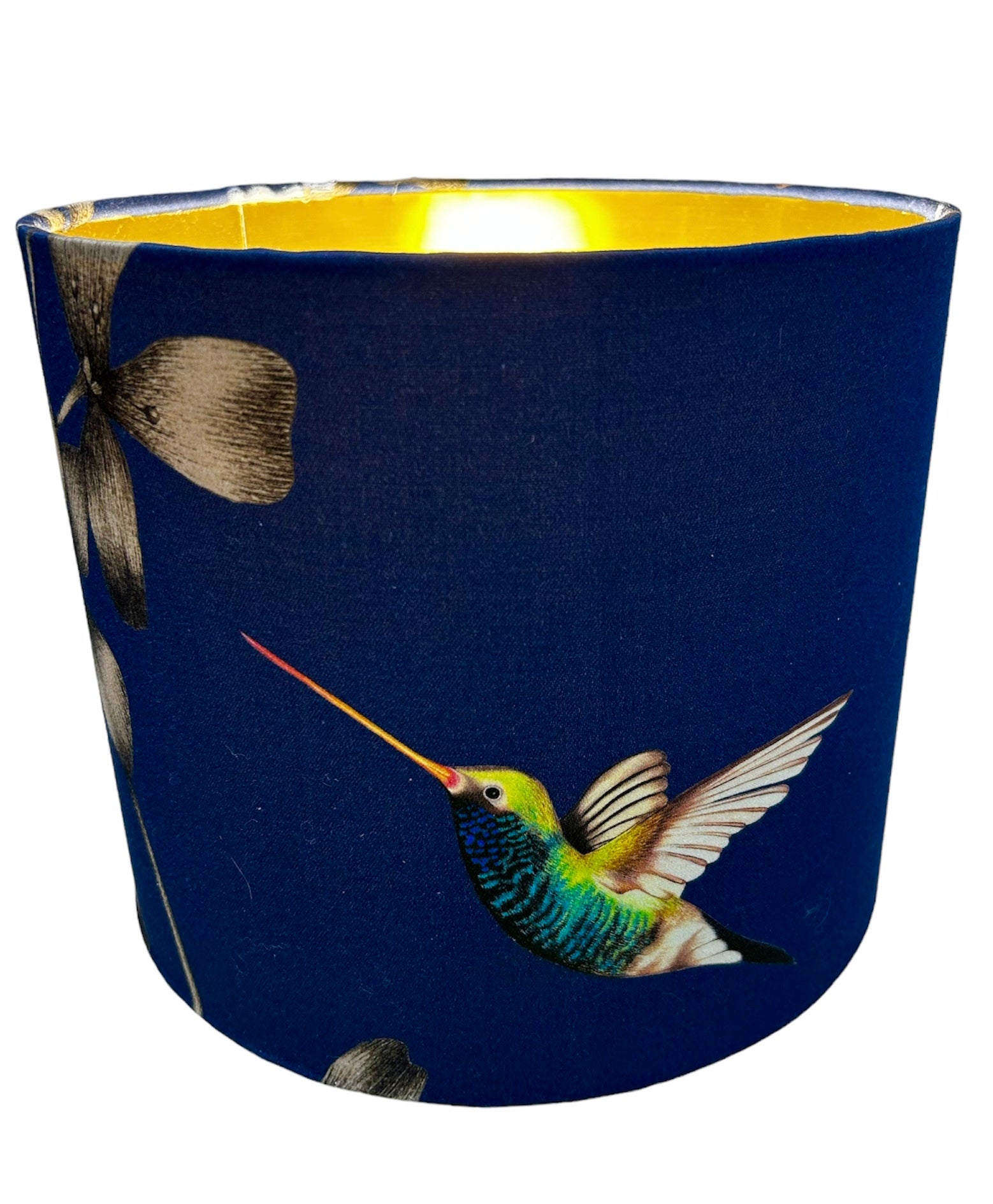 This Lampshade features two hummingbirds on a dark navy background and an amazing gold lining! There are two designs available so please do check the other design.