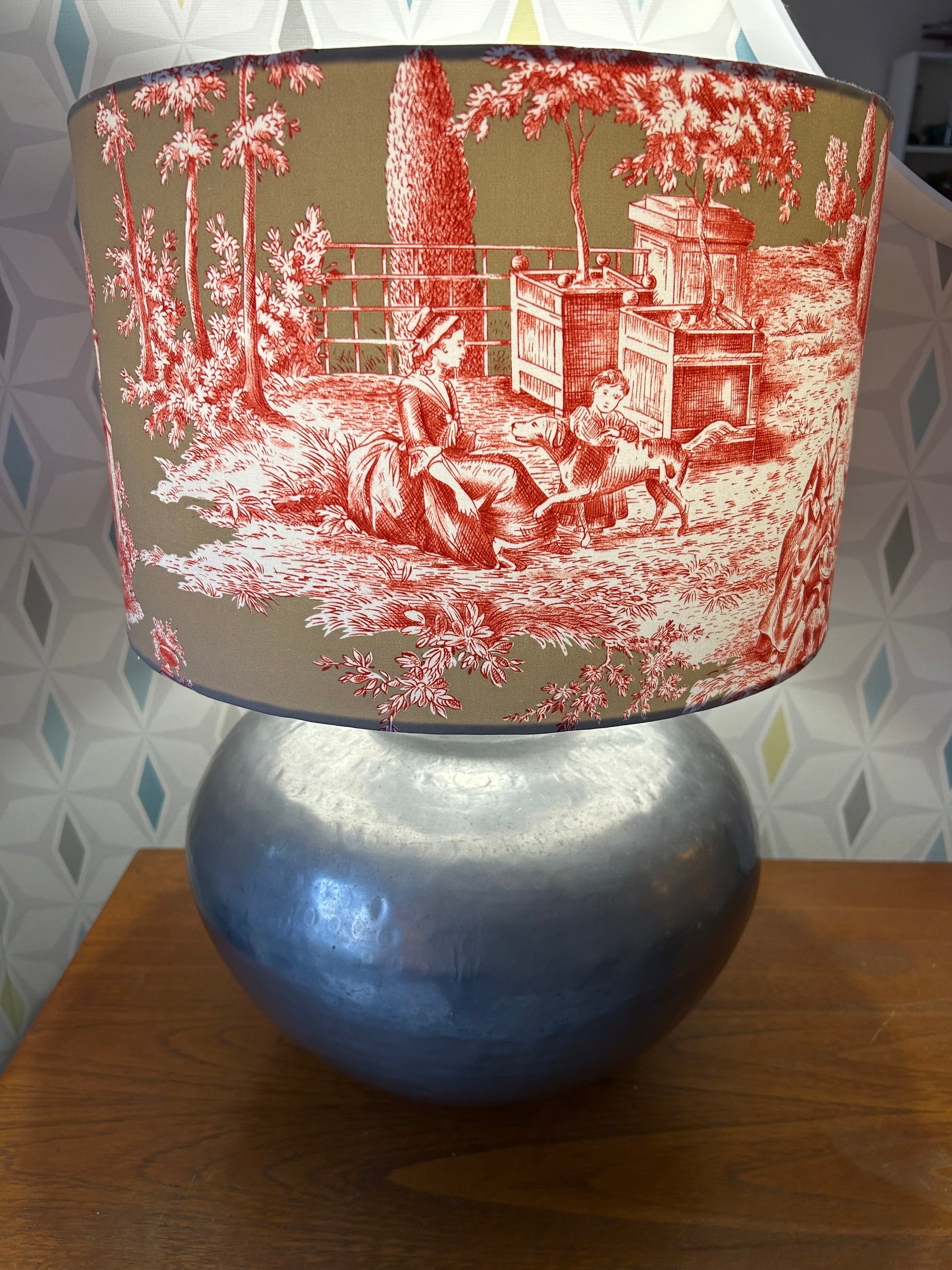 Rare 40cm French toile de Jouy pattern fabric Lampshade