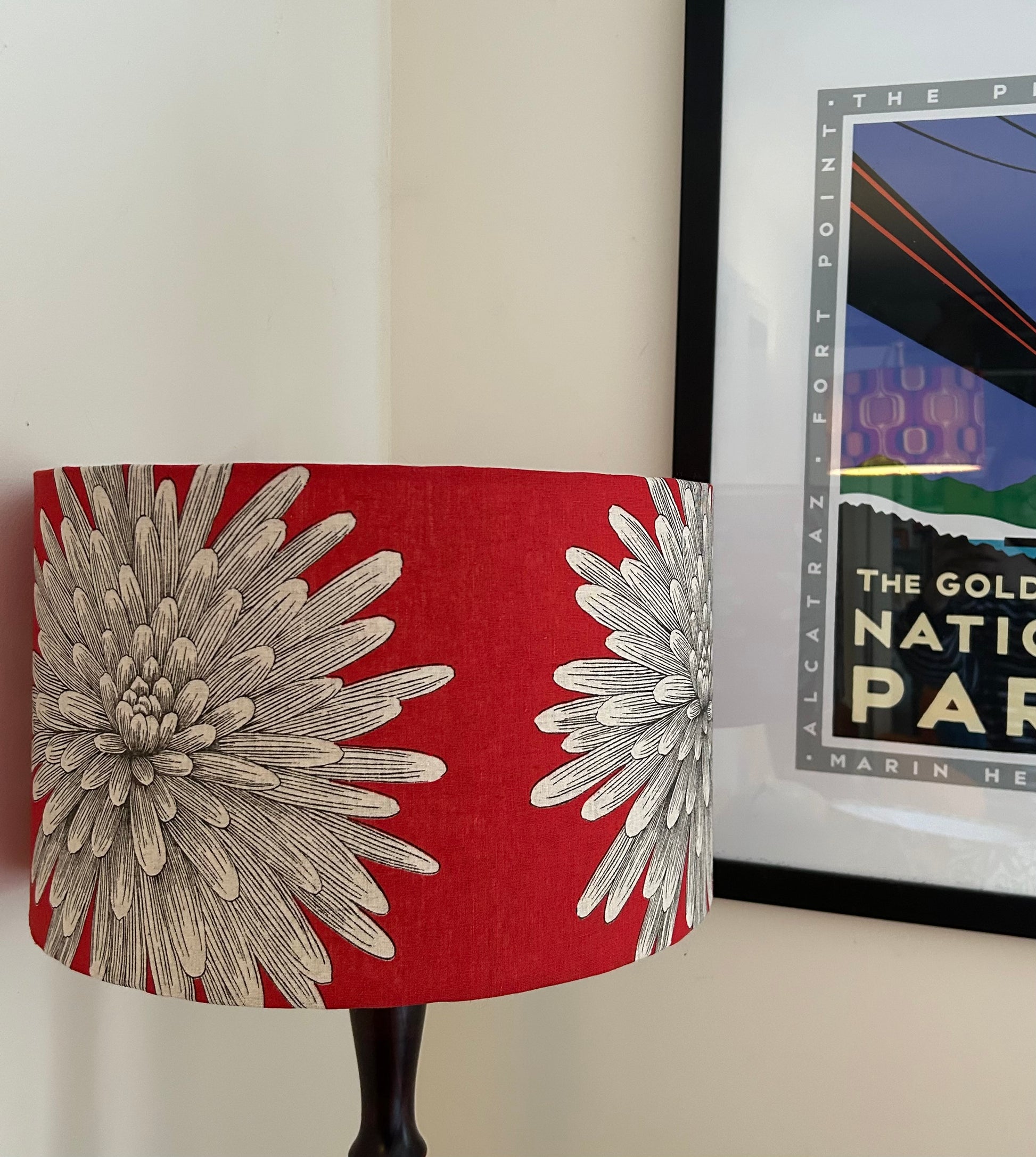 Each lampshade sold is handmade by us here in Norfolk. This lampshade can be used with a table lamp and each order comes with a plastic converting ring which will allow fitting for UK and EU standard lamp fitments.